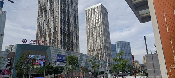 万博天河城商城主体座西向东,商城主大门开在汉溪大道与万博二路的交叉口处,主大门开在整座天河城的东北方位,大门朝向东北丑艮方,这样就形成了坤艮未丑格局,而且在西北方位和东南方位各有一栋高层的写字楼。那么,万博天河城商城为什么要用这样的布局设计及大门开在这样位置朝向呢?我们知道:万博天河城的主来水是汉溪大道从东向西延伸而来至万博二路交叉口,水势一部分继续向西(天河城的左后方)流走,一部分被万博二路引流从(天河城面前)的东北向东南流行。天河商城主大门开在汉溪大道与万博二路交叉口的东北方位,而且朝向东北的艮丑分金,正好迎纳了汉溪大道的无形水,又能引流无形来水入万博二路从堂前环绕而过,这叫来水过明堂的水局,而天河商城的东北位置正好是七号地铁万博站的出入口,天河城更加留有一偏门直通地铁站出口,这样更是把地铁的无形暗水尽收无遗。再从汉溪大道及万博二路的无形水流态势而论,天河城左后(西北方位)去水方有一栋高层写字楼,正好守住了左后方的去水,这俗称出水口紧锁。而万博二路天河城路段正好是天河商城的无形明堂水,无独有偶,天河城的右前下方(东南角)也有一栋高层的写字楼,无形之中也就把无形的明堂出水口紧紧地锁住。更从天河城商城主大门的朝向和大门的位置而言,天河商城西北(左)和东南(右)的两栋高层写字楼正好形成了商城的青龙白虎砂,商城左右青龙白虎辅弼有情,这样玄妙的风水布局,更是商城的人气及商贸景象在本商圈的众多商业体中成为佼佼者的依据之二。